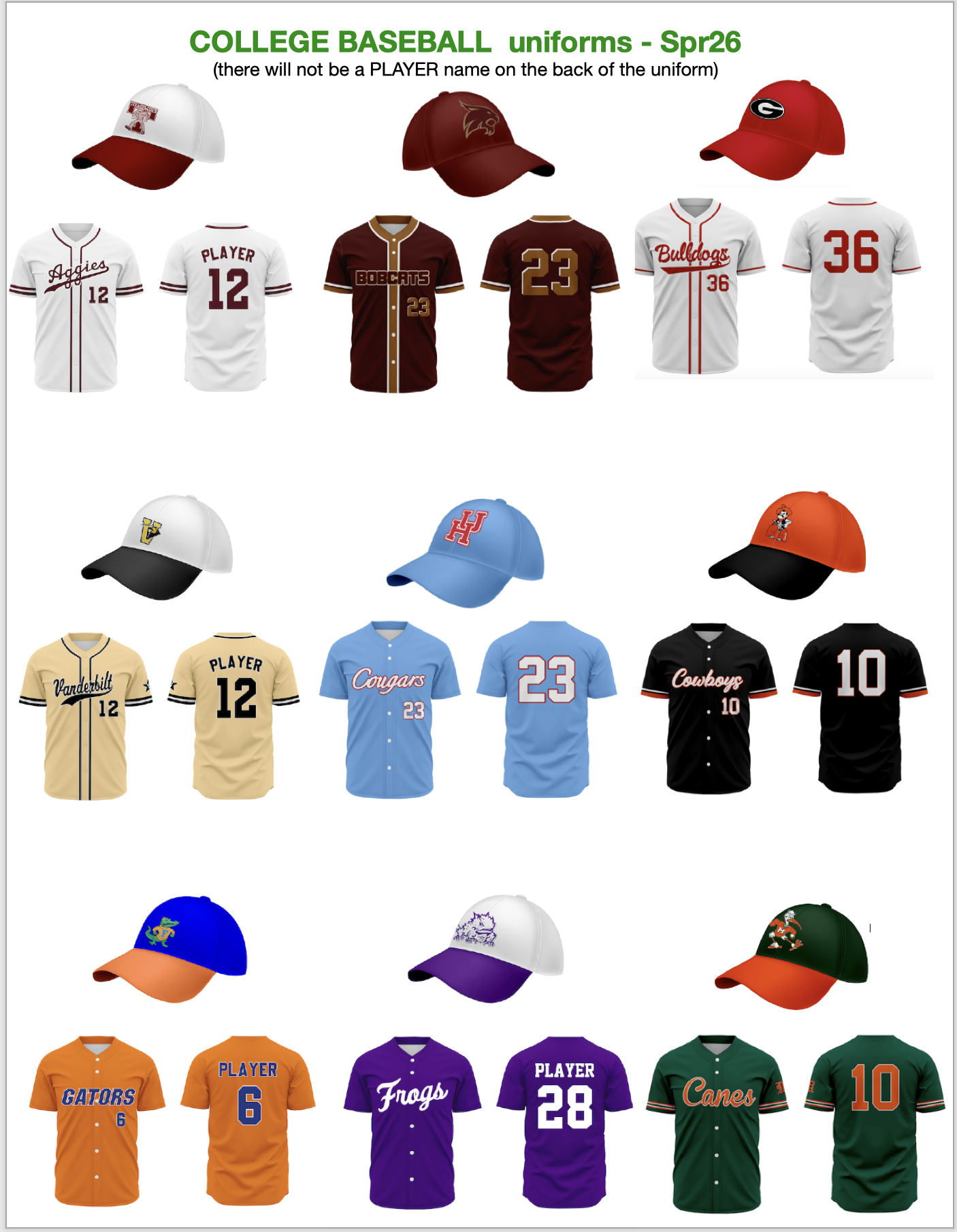 MAJOR LEAGUE uniforms (9U, 10U, 11U, 12U; 14U, SR) :